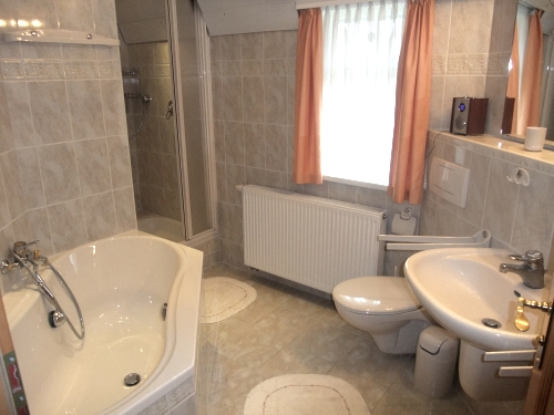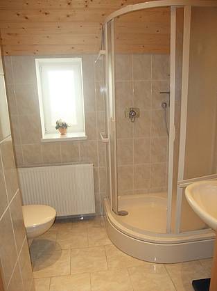 Duschbad, Badewanne, Wäscheständer, WC, Fön |