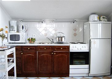 Küchenzeile, Kühlschrank, Gefrierschrank, Mikrowelle, Backofen, Bügelbrett, Bügeleisen, Kaffeemaschine, Toaster |