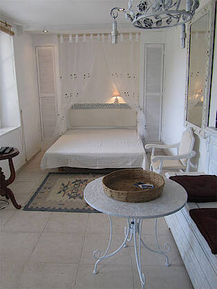 Das kleine Windhaus hat einen separaten Eingang unterhalb des großen Windhauses und besteht aus einem Schlaf-Wohnzimmer, einer Küche mit Gasherd, Mikrowelle, Geschirr, Besteck etc.. und einem Bad mit Dusche. Das kleine Windhaus hat einen eigenen Bereich im Garten mit Meerblick.