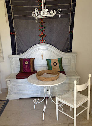 Im freien zwischen Feigenbäumen befindet sich eine geräumige Sitz-Essgelegenheit mit Barbecue und eine Freilanddusche für die Naturliebhaber.