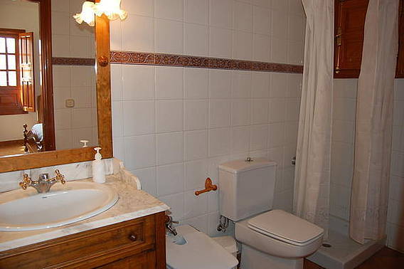 * 3 Schlafzimmer, eines mit Doppelbett (1,35 x1,90 m) und die anderen zwei mit jeweils zwei Einzelbetten (90x1,90 m). Ein Kinderbett ist vorhanden. * Zwei Badezimmer, eines mit Dusche und eines mit Badewanne. Küche - Wohnraum mit Kaffeemaschine, Wasserkocher, Backofen, Glaskeramikherd, Kühlschrank mit Gefrierfach und Waschmaschine. Satelliten-TV, DVD und CD-Radio. * Im Freien: Terrasse, Solarium, Schwimmbad (1,20 - 1,60 m tief). Gartenmöbel und 6 Sonnenliegen. * Kostenlos Wiffi.