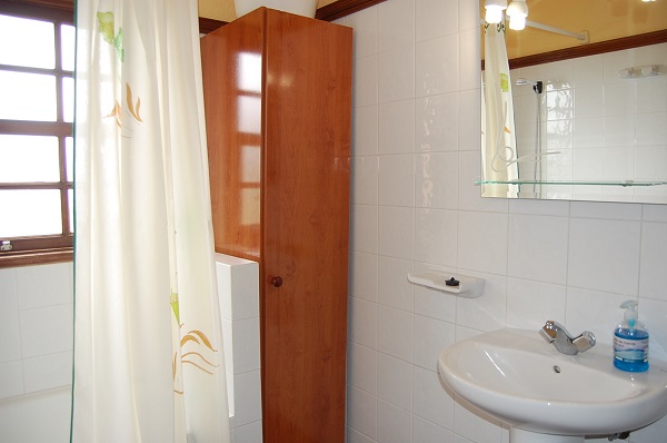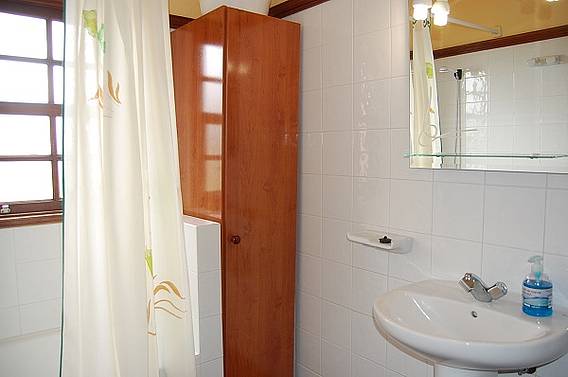 * Badezimmer mit Badewanne, Küche und Wohnzimmer mit Sat-TV und CD-Radio. Die Küche ist mit Kaffeemaschine, Wasserkocher, Mikrowelle, großer Kühlschrank mit Gefrierfach und Waschmaschine ausgestattet.