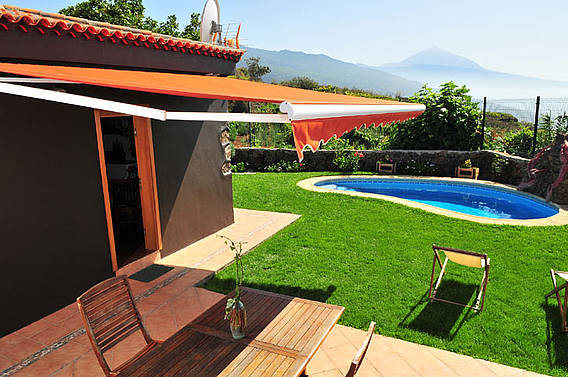 • Großer Garten mit privatem Pool, BBQ und herrlichem Blick auf das Meer und Teide.