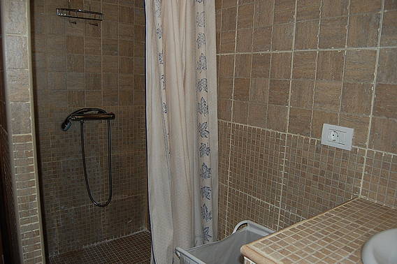 * Das Badezimmer ist mit einer Dusche.