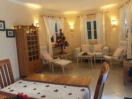 Klimaanlage und Heizung in allen Räumen, Safe, SAT-TV, Radio, Geschirrspülmaschine, ein großer Kühlschrank mit separatem Gefrierfach, Cerankochfeld, Umluftbackofen, Mikrowellenherd, Kaffee-Vollautomat Delonghi, hochwertige Osmose-Anlage für gefiltertes Trinkwasser, Toaster, Waschmaschine, Bügeleisen, Bügelbrett, Gartengrill, Sonnenliegen, Bettwäsche, Handtücher, Geschirrtücher.....