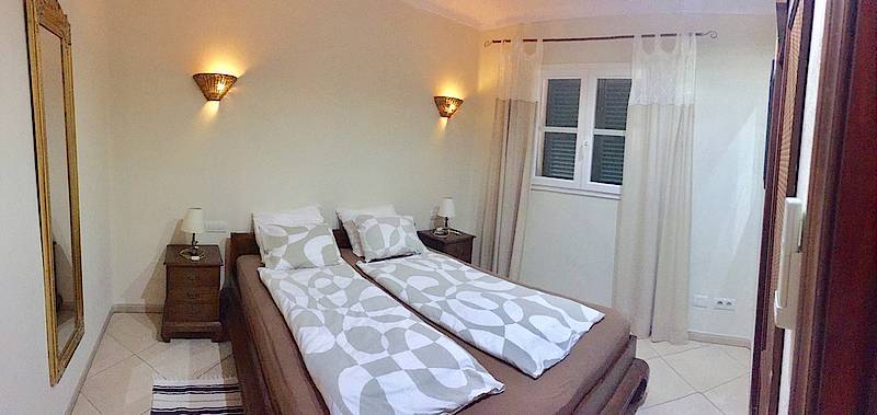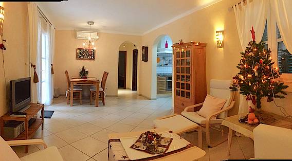 Das ebenerdige Einfamilienhaus hat 2 Doppelschlafzimmer mit Einbauschränken und Klimaanlage, ein Wohn-Esszimmer, eine komplette Küche mit Geschirrspülmaschine, 2 Bäder mit gr. Duschen, Waschtisch + WC.