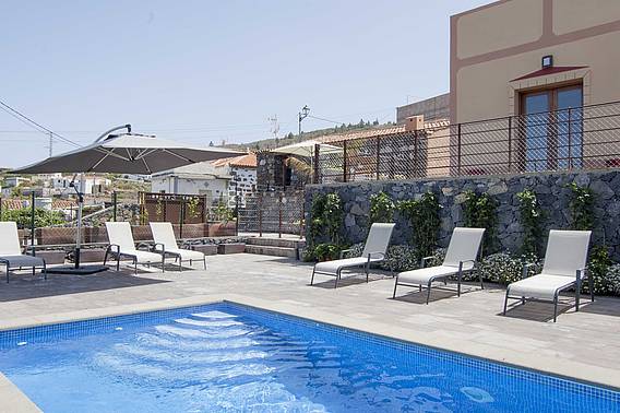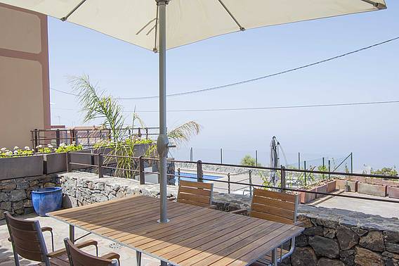 Das Haus besteht aus einem schönen Wohnzimmer mit Terrasse und herrlichem Blick auf den Pool und die Inseln La Gomera, El Hierro und La Palma.