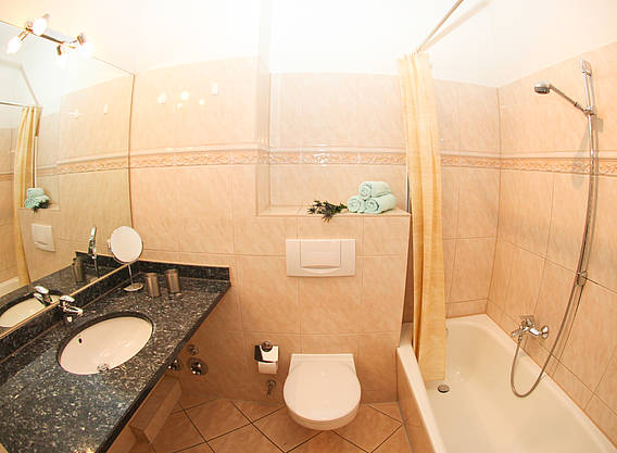 Die Ferienwohnung hat ca. 55 qm, Wohnzimmer mit Essplatz, LCD-TV, DVD, Video, Radio/CDPlayer, große Loggia mit Küche und Essplatz, vollständig eingerichtet einchl. Geschirrspüler, Kaffeemaschine usw., Schlafzimmer mit Doppelbett, Sofa, TV, Radio/CD-Player, Wannenbad, Balkon, Bügeleisen, -brett, Münzwaschmaschine, -trockner, Fahrradabstellraum mit zwei Fahrrädern im Keller, Tiefgaragenstellplatz (Autohöhe bis 2 m) Kinderspielplatz im Garten, keine Haustiere, Nichtraucher.