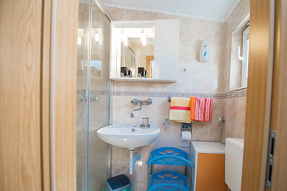 Ihr Urlaubs Objekt:Die Ferienwohnung ist umgeben von einem Gartengrundstueck.Fewo Adria A 2 befindet sich im selben Haus.Zur gemeisamen Nutzung stehen zur Verfuegung :Gartendusche,Grillmoeglic