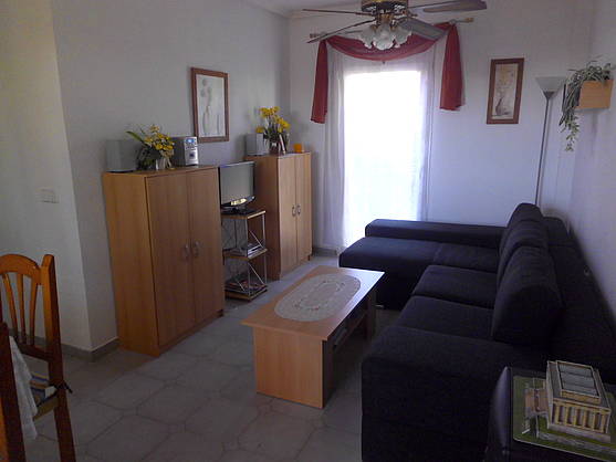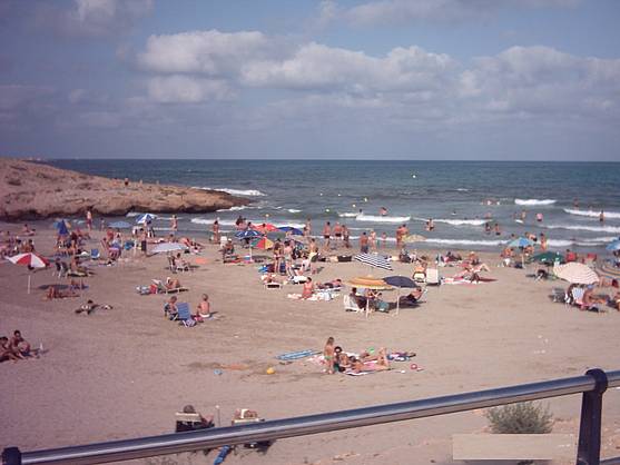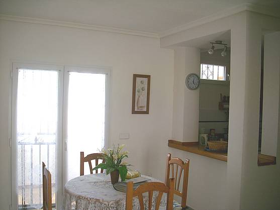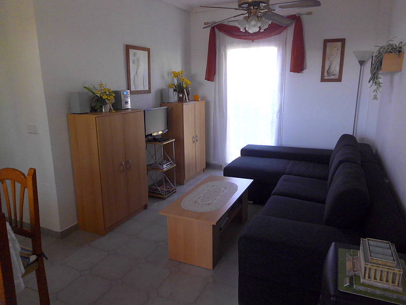 Modern eingerichtete Ferienwohnung in zentraler Lage von privat in Orihuela Costa (nahe Torrevieja) zu vermieten. Gemeinschaftspool direkt vor dem Haus, ein weiterer Pool gehört zur Anlage, Geschäfte und Restaurants nur 3-5 Fußminuten, zum Meer ca. 500 m. Sowohl von einem Balkon wie auch der Dachterrasse ist das Mittelmeer zu sehen. Die Wohnung mit 2 Schlafzimmer, Wohnzimmer, Küche, Bad und großer Dachterrasse befindet sich im 1. Stock. Zur Ausstattung gehören z. B. Klimaanlage (warm/kalt), Waschmaschine, SAT-TV, Stereoanlage, Grill und Sonnenschirm auf der Dachterrasse. Bettwäsche und Handtücher sind vorhanden.