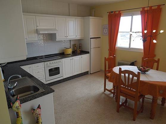 Die Küche ist zum Wohn- und Esszimmer hin offen, was zu einem hellen Ambiente führt. Das Wohnzimmer bietet ein kuscheliges Sofa mit SAT-TV. Im Essbereich haben 3-4 Personen Platz. Das Badezimmer verfügt über eine Dusche/Badewanne und eine Waschmaschine.