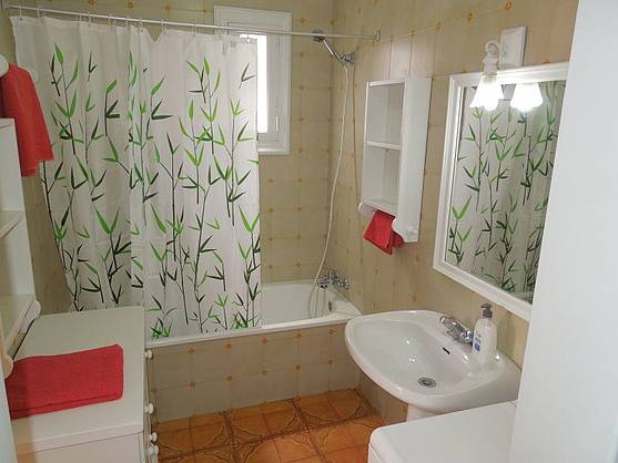 Duschbad, Badewanne, Wäscheständer, WC, Fön |