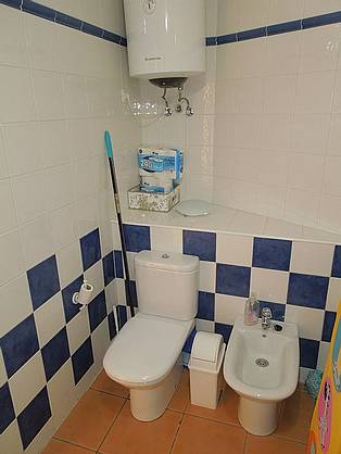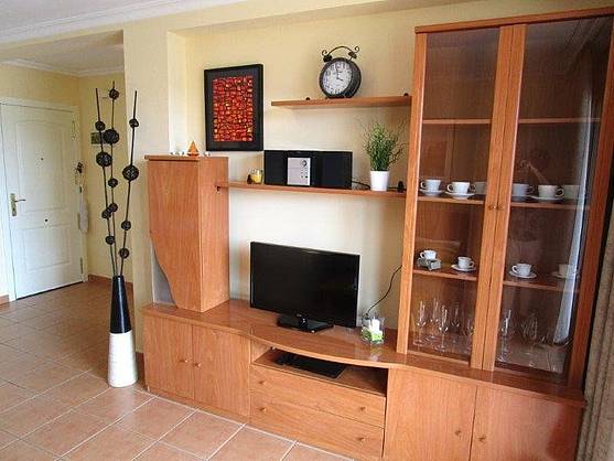 Das gemütliche Wohnzimmer hat einen Flachbild-Fernseher mit Satelliten-Programmen. Daran grenzt die Küche an, die komplett ausgestattet ist mit Elektroherd mit Cerankochfeld, Backofen, Mikrowelle, Kaffeemaschine, Wasserkocher und allen Kochutensilien, die man für einen komfortablen Urlaub braucht. Außerdem gibt es ein helles Badezimmer mit Dusche und Waschmaschine. Die Terrasse, die zur Poolseite ausgerichtet ist.