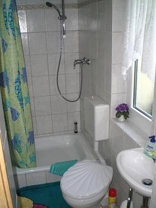 Duschbad, Wäscheständer, WC, Fön |
