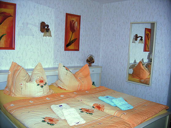 Die Ferienwohnung besteht aus Wohnzimmer mit Echcouch (mit Schlaffunktion zur Aufbettung) , Schlafraum mit Ehebetten sowie aus einer Kochniesche und Bad mit Du/ WC.