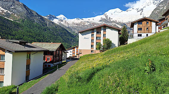 Das Ferienhaus Azur befindet sich im sonnigsten Teil von Saas-Fee in ruhiger, erholsamer Lage. Direkt neben dem Haus liegt ein Lebensmittelgeschäft. Da das Dorf autofrei ist, können Sie die Ruhe und die frische Bergluft ungestört geniessen.