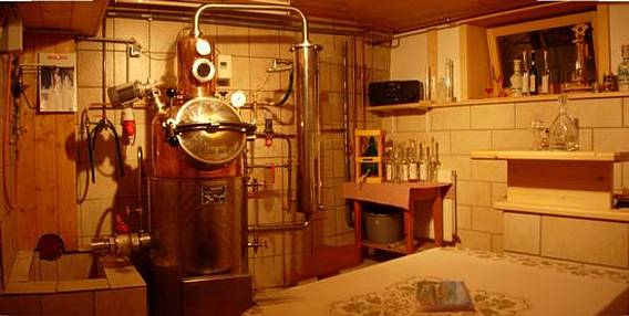 Schnapsbrennerei-Besichtigung mit Verkostungsmöglichkeit im Haus möglich.