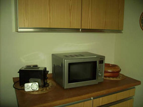 Küchenzeile, Kühlschrank, Spülmaschine, Mikrowelle, Backofen, Bügelbrett, Bügeleisen, Kaffeemaschine, Toaster |