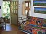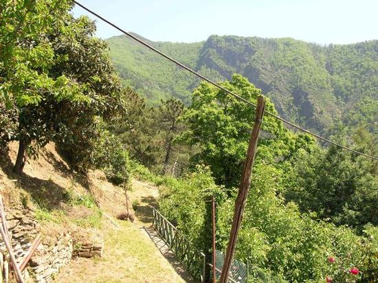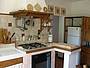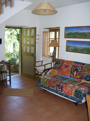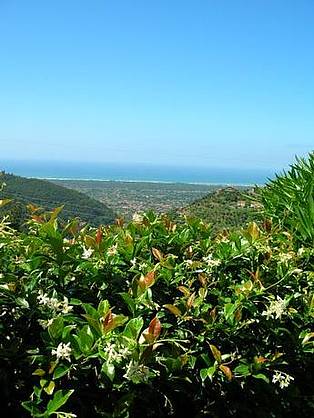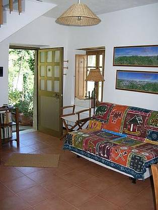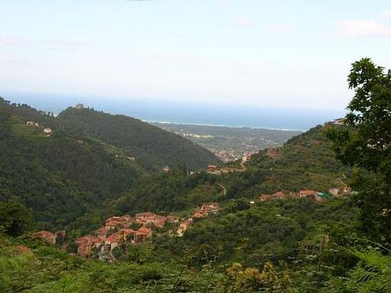 Il Piccolo Nido is in the village of Sant'Eustachio (Montignoso Municipality, Massa-Carrara Province, Northern Tuscany), on the slopes of the Apuan Alps, approx. 300 m above sea level. The house has nothing in front of it but the view of the sea and the coastline, the hills below and sunshine. The house is facing south, and because each room has southwards windows, Il Piccolo Nido is full of sunlight. It has 4 rooms, 3 on the ground floor and one, the sleeping room, on the first floor. It is about 55 m square. The entrance is in the living room, a sunny room with the fireplace and a sleeping sofa (dimensions of the bed: 140x200cm). Available to guests are the sat TV/radio, the stereo and a collection of books (mainly italian books). From the living room one get to the kitchen or taking the stairs to the sleeping room. The kitchen has a "cucina in muratura" (litterally a brickwork kitchen) as it was common in the past. A brick structure lodges the cooking fires, the electric oven and the ceramic sink. The kitchen is well organized and equipped. The sleeping room is upstairs with a king bed (180x200 cm) and an open wardrobe. The roof with the chestnut beams and boards is on view. Moving from the kitchen you get to the toilet or to the garden. In the garden available to our guests are the washing machine, a table with chairs and an ombrella but most of all the view on the coast and the valley. The house is one of the oldest of Sant'Eustachio and it is listed in the Catasto Borbonico (land registry) of early 1800s. Before 1950s the house was a three floor house, one room per floor (this structure is locally called "terratetto", litterally "roof-ground"). Terratetto was the typical house structure of the area. It was made with the local stone called Cardoso. After the 1960s, the third floor was destroyed and the new part of the house (where the kitchen and the toilet are now) was built. Il Piccolo Nido was bought in 2001, and renovation started in 2002. It our desire to fully restore Il Piccolo Nido to enhance its historic value. In 2005 part of the roof was restructured with chestnut beams and boards. Part of the roof and the facade need to be restored yet. The facade of the old part of the house will have the stone walls on view.