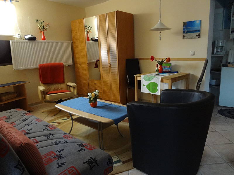 Das Appartement ist hell und freundlich eingerichtet. Auf etwa 40 m² bietet das 1-Raum-Appartement in seinem kombinierten Schlaf- und Wohnbereich Platz für bis zu 3 Personen. Für Ihren kurzen oder längeren Ostseeaufenthalt ist unser Ferien-Appartements mit einem Doppelbett und einer Sitzecke, die als Schlafsofa zur Aufbettung genutzt werden kann, ausgestattet. Zusätzlich beinhaltet unser strandnahes Appartements eine kleine, offene Pantry-Küche mit u.a. Kühlschrank, Mikrowelle, Toaster, Wasserkocher, Kaffemaschine und Eierkocher. Und auch für Sat -TV, Radio, Internetanschluss und WLAN ist gesorgt. Dusche und WC befinden sich im separierten Bereich. Preis pro Tag für 2 Personen für Bettwäsche, Handtücher, Strom, Wasser, Heizung. Parkplatz & Fahrräder sind kostenfrei !