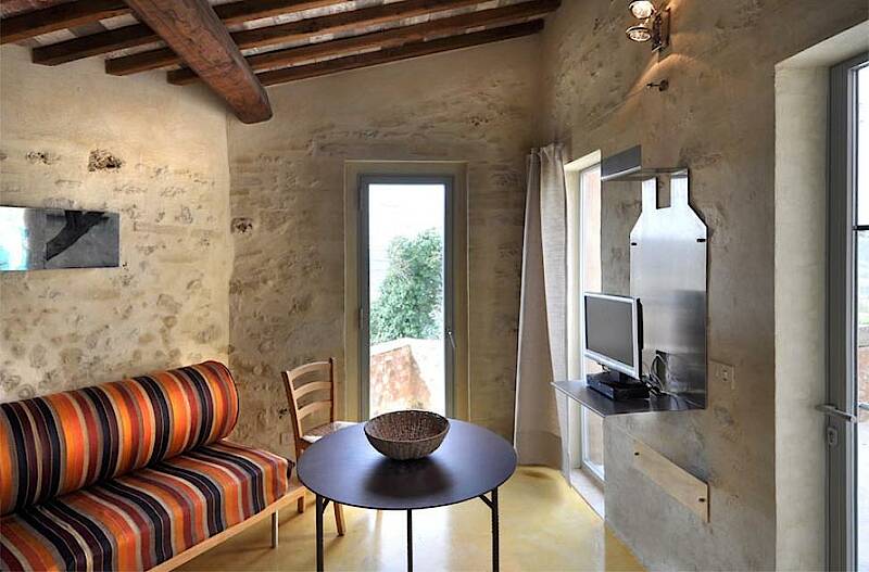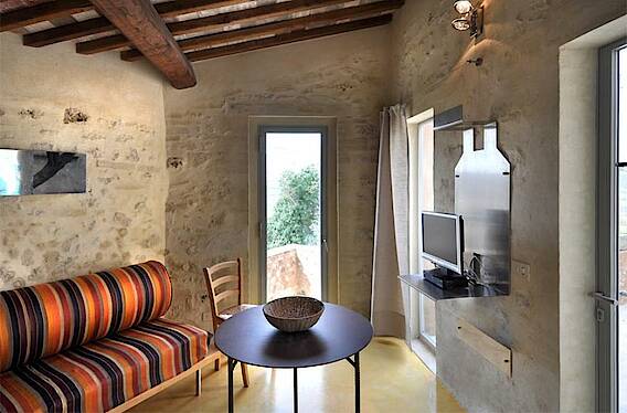 Das Gebäude ist geschmackvoll und bequem eingerichtet und es verfügt über eine Heizung, Sat Tv, Babybett und ausserdem über eine Waschmaschine. Die vollausgestattete Küche besitzt einen Zugang, zu dem mit Licht ausgefülltem Wohnzimmer mit Fernseher führt. Es verfügt über ein Badezimmer mit Dusche. Was das Gebäude außerdem attraktiv gestaltet, ist das Doppelzimmer mit einem herrlichem Blick auf die schöne Landschaft der Toskana. Der Fußboden sowie alle anderen verbauten Materialien sind sehr hochwertig verarbeitet.
