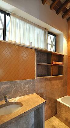 Poggio al Leccio1 für 6 Personen ( 130 qm² ). Das Haus besitzt einen Gartenbereich mit einem Rosengarten und einem Fußballfeld. Es wurde vor kurzem komplett renoviert, ohne den historischen Charakter des Gebäudes zu beeinträchtigen. Das Gebäude ist geschmackvoll eingerichtet, es verfügt über eine Heizung, Sat Tv, ein Babybett und einer gemeinsamen Waschmaschine. Der Außenbereich und die Terrasse besteht aus Terrakotafliesen und bietet einen Blick auf die Türme der mittelalterlichen Festung von San Gimignano. Das Gebäude hat eine 130 qm² große Wohnfläche über zwei Ebenen mit einem Open-Space. Der 40 qm² und 7 m hohe Raum beinhaltet eineSofaecke, Kamin und Speisebereich, welche mit einer schönen Steinküche verbunden ist. Im Erdgeschoss befindet sich ein Doppelschlafzimmer, mit Zugang zur Terrasse, und ein Bad. Das Obergeschoss hat ein Doppelzimmer und ein Zweibettzimmer, sowie ein Badezimmer mit Dusche.