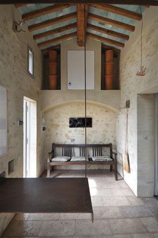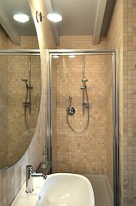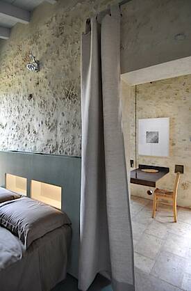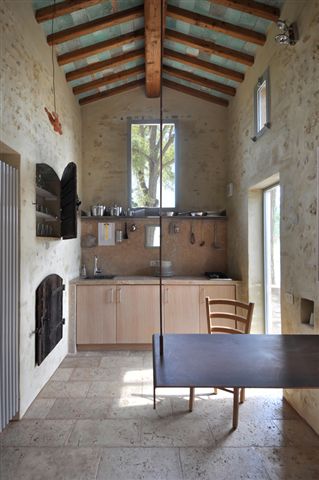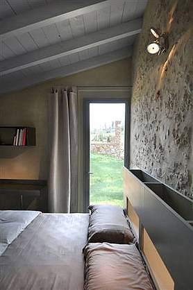 Das Haus besitzt eine Küchenzeile mit Wohnraum welche sich perfekt in den historischen charakter des Hauses einfügen. Bei der Gestaltung des Schlafzimmers wurde Rücksicht auf den Charakter des Hauses genommen. Das Schlafzimmer verfügt über ein Badezimmer mit großem Spiegel und einer Dusche mit Glastrennscheibe. Die Böden sind aus qualitativ hochwertigen Traventin (Kalkplatten) und Kunstharz. Das Bad ist aus passendem Mosaik. Die eigens für das Haus entworfenen Möbel passen sich perfekt in die charakteristik des Hauses ein. Das Haus eignet sich deswegen gut für Paare die sich mal ganz unter sich entspannen möchten.
