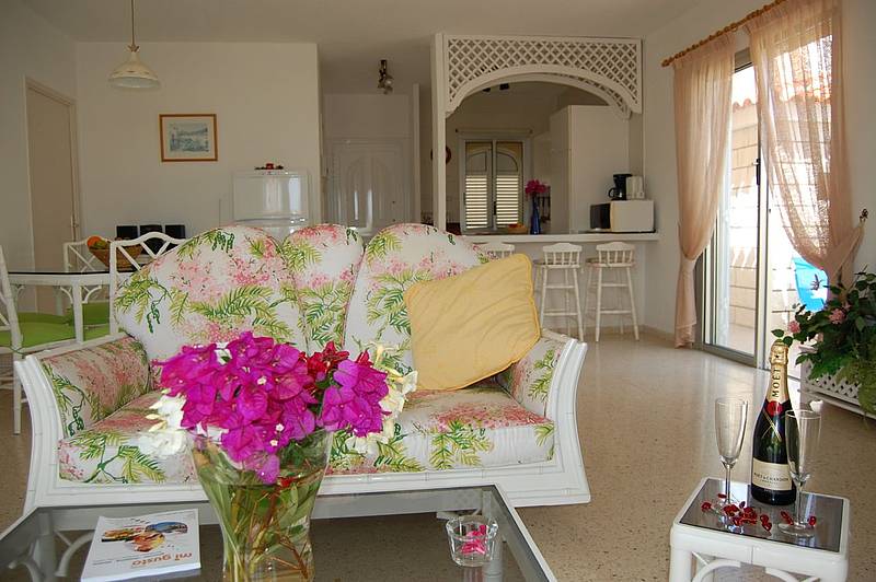 * Zwei Schlafzimmer mit je zwei Einzelbetten in jedem. * Zwei Badezimmer, eines mit Badewanne und eines mit Dusche, Wohnzimmer mit voll ausgestatteter Küche, Sat-TV. Pool 6x3 Meter, BBQ, Garten und Meerblick.
