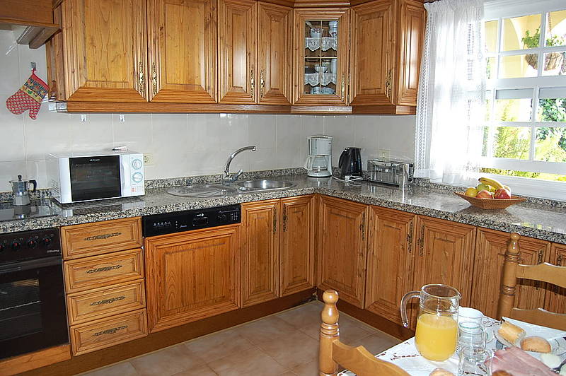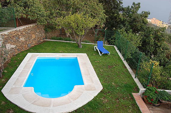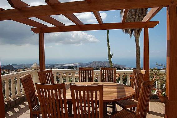 Die Innenräume sind schön und geräumig, die Außenanlage von üppiger Vegetation, grün und mit einem spektakulären Ausblick auf die Küste von Las Américas und Los Cristianos. Ideal, um sich zu entspannen, während man das blaue Meer und langsam dahin fahrenden Schiffe beobachtet. In der Umgebung des Hauses befinden sich ein Grillplatz und wunderbare Gartentische, um ein gemütliches Frühstück, Mittag- oder Abendessen zu genießen. Der Garten der Villa verfügt über ein 5,7 x 3 Meter großen Swimmingpool. Die Villa ist von zahlreichen Bäumen, wie etwa Avocado- und Orangenbäumen umgeben.