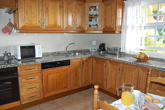 Küchenzeile, Kühlschrank, Gefrierschrank, Spülmaschine, Mikrowelle, Backofen, Waschmaschine, Bügelbrett, Bügeleisen, Kaffeemaschine, Toaster |