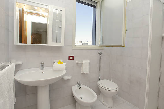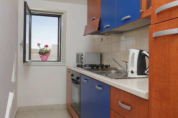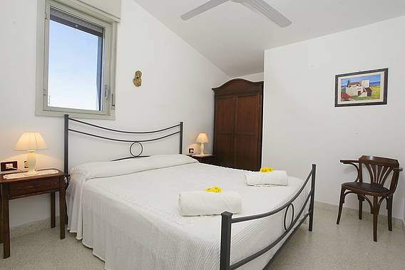 Im ersten Stock der villetta mit pool befindet sich die Wohnung "casa Marinella" von 65mq Grösse. Die Wohnung hat zwei Schlafzimmer mit Deckenventilatoren, modernen Wohnraum mit Schlafsofa, anliegende Küche, 1 Badezimmer, Abstellraum und Veranda mit Meerblick. Im Erdgeschoss befindet sich die Wohnung "casa Giuseppina", 75mq gross, hat ebenfalls zwei Schlafzimmer, grossen Wohnraum und moderne Küche, 1 Badezimmer. Um das Haus hat es 3 Verandas, eine davon ausgestattet mit Aussenküche und Barbecue. Der pool steht zur gemeinsamen Benutzung beider Wohnungen zur Verfügung.